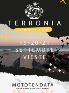 TERRONIA SUMMER CAMP 19-20-21 Settembre Vieste– 41°54’53.8”N, 16°06’43.5”E Torna la mototendata più attesa dell’anno in mood estivo: tre giorni di mare, tende, cibo e divertimento in pieno spirito Terronia! Un’occasione
